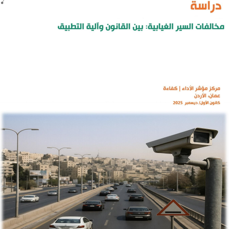 تأتي هذه الدراسة ضمن سلسلة الدراسات التحليلية التي يصدرها مركز مؤشر الأداء – كفاءة، وتهدف إلى تقديم تقييم شامل لواقع مخالفات السير في الأردن، مع التركيز على المخالفات الغيابية المنتشرة في السنوات الأخيرة، وتحليل أثرها المالي والاجتماعي والقانوني على المواطنين وثقتهم بأجهزة الرقابة المرورية.