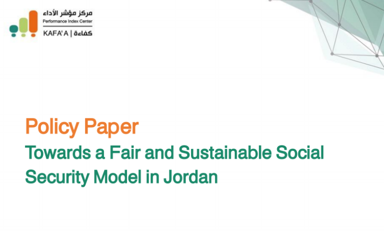 Performance Index Center – KAFA’A has launched a new policy paper titled “Towards a Fair and Sustainable Social Security Model in Jordan”. This paper is part of the Center’s ongoing efforts to provide analytical and reformist insights into public policies. The paper aims to present innovative alternatives that ensure the long-term viability and financial sustainability of the Jordanian pension system for future generations. It advocates for a shift away from traditional coercive measures, such as raising the mandatory retirement age, by restructuring incentives and guiding institutional and individual behavior toward continued productivity.